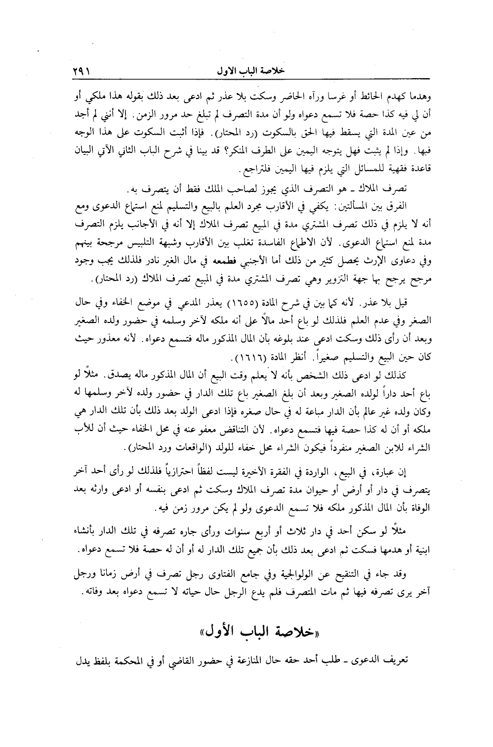 [خُلَاصَةُ الْبَابِ الْأَوَّلِ فِي تَعْرِيفُ الدَّعْوَى]