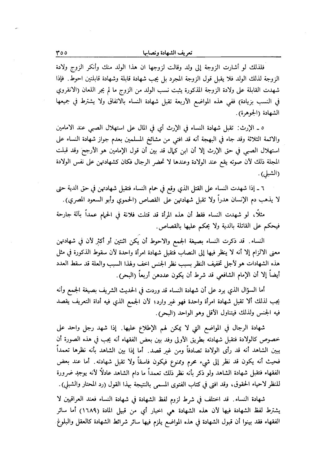 6 - إذَا شَهِدَتْ النِّسَاءُ عَلَى الْقَتْلِ الَّذِي وَقَعَ فِي حَمَّامِ النِّسَاءِ فَتُقْبَلُ شَهَادَتُهُنَّ فِي حَقِّ الدِّيَةِ حَتَّى لَا يَذْهَبَ دَمُ الْإِنْسَانِ هَدَرًا وَلَا تُقْبَلُ شَهَادَتُهُنَّ عَلَى الْقِصَاصِ (الْحَمَوِيُّ وَأَبُو السُّعُودِ الْمِصْرِيُّ) .
