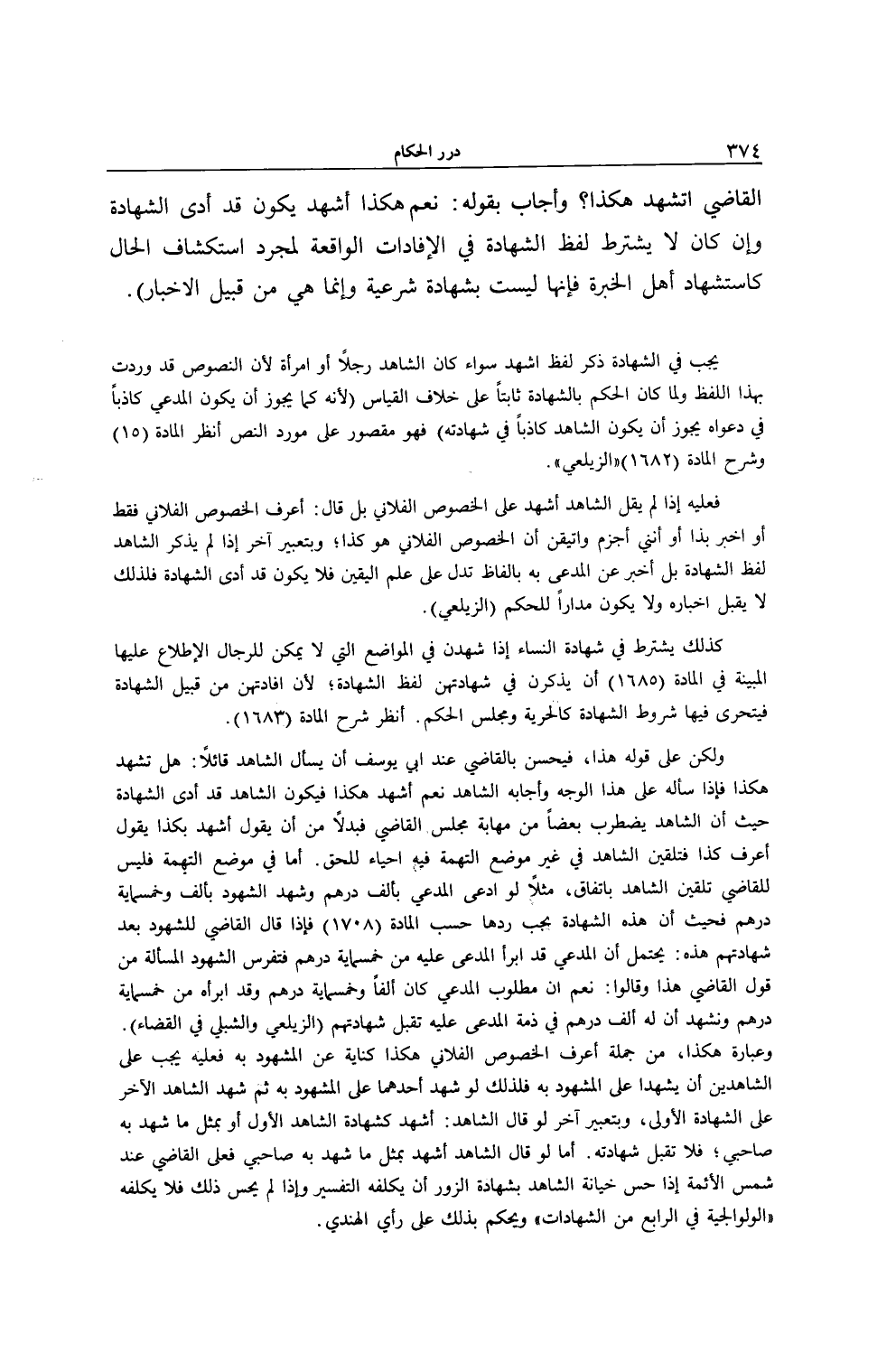 يَجِبُ فِي الشَّهَادَةِ ذِكْرُ لَفْظِ " أَشْهَدُ " سَوَاءٌ كَانَ الشَّاهِدُ رَجُلًا أَوْ امْرَأَةً؛ لِأَنَّ النُّصُوصَ قَدْ وَرَدَتْ بِهَذَا اللَّفْظِ وَلَمَّا كَانَ الْحُكْمُ بِالشَّهَادَةِ ثَابِتًا عَلَى خِلَافِ الْقِيَاسِ (لِأَنَّهُ كَمَا يَجُوزُ أَنْ يَكُونَ الْمُدَّعِي كَاذِبًا فِي دَعْوَاهُ يَجُوزُ أَنْ يَكُونَ الشَّاهِدُ كَاذِبًا فِي شَهَادَتِهِ) فَهُوَ مَقْصُورٌ عَلَى مَوْرِدِ النَّصِّ اُنْظُرْ الْمَادَّةَ (15) وَشَرْحَ الْمَادَّةِ (1682) (الزَّيْلَعِيّ) .