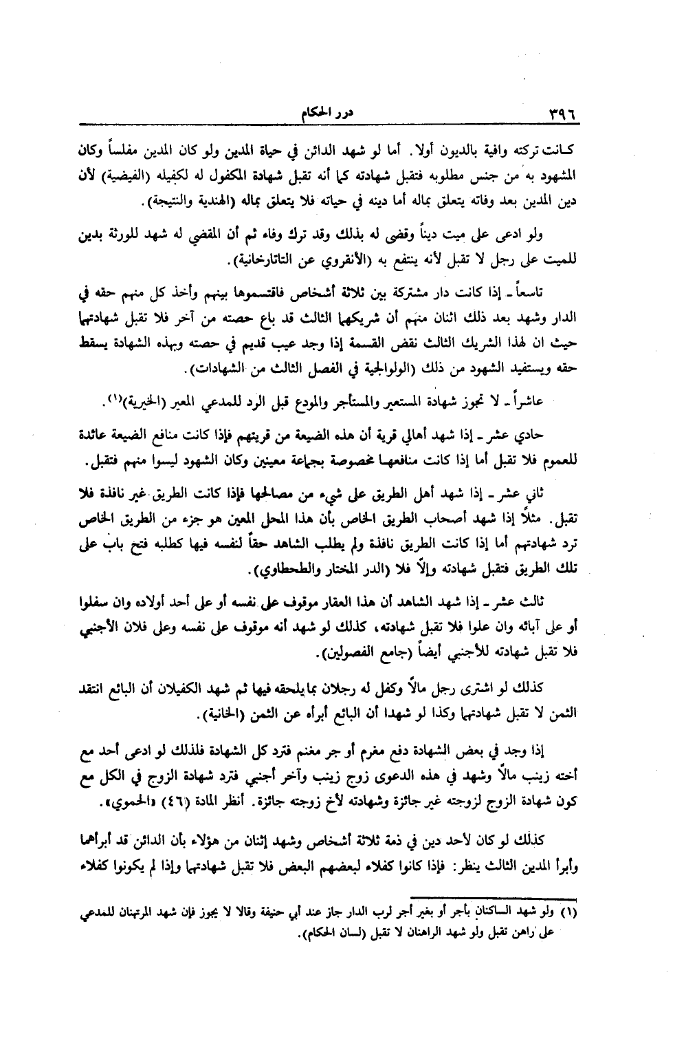 حَادِي عَشَرَ - إذَا شَهِدَ أَهَالِي قَرْيَةٍ أَنَّ هَذِهِ الضَّيْعَةَ مِنْ قَرْيَتِهِمْ فَإِذَا كَانَتْ مَنَافِعُ الضَّيْعَةِ عَائِدَةً لِلْعُمُومِ فَلَا تُقْبَلُ أَمَّا إذَا كَانَتْ مَنَافِعُهَا مَخْصُوصَةً بِجَمَاعَةٍ مُعَيَّنِينَ وَكَانَ الشُّهُودُ لَيْسُوا مِنْهُمْ فَتُقْبَلُ.