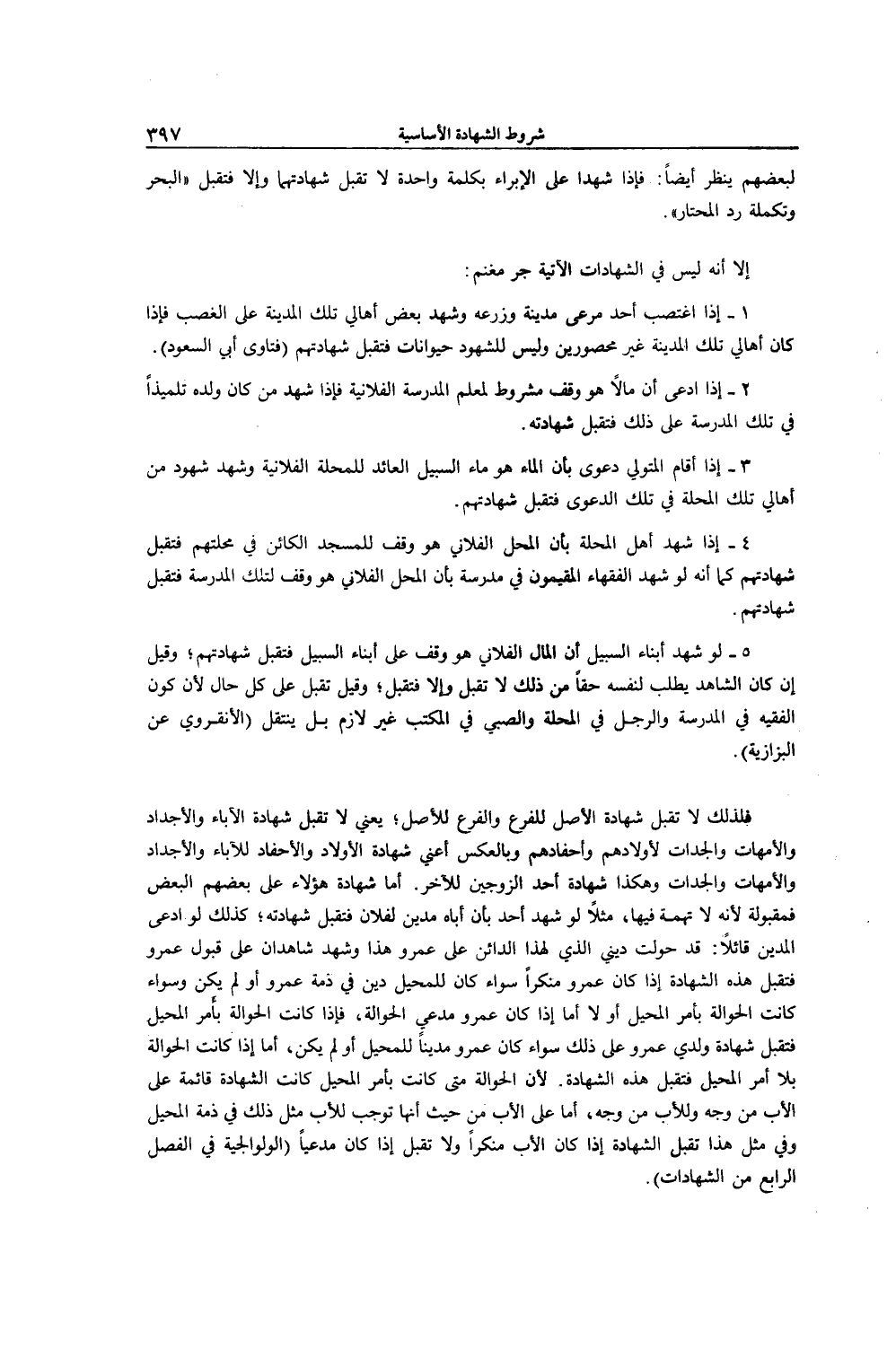 3 - إذَا أَقَامَ الْمُتَوَلِّي دَعْوَى بِأَنَّ الْمَاءَ هُوَ مَاءُ السَّبِيلِ الْعَائِدُ لِلْمَحَلَّةِ الْفُلَانِيَّةِ وَشَهِدَ شُهُودٌ مِنْ أَهَالِي تِلْكَ الْمَحَلَّةِ فِي تِلْكَ الدَّعْوَى فَتُقْبَلُ شَهَادَتُهُمْ.
