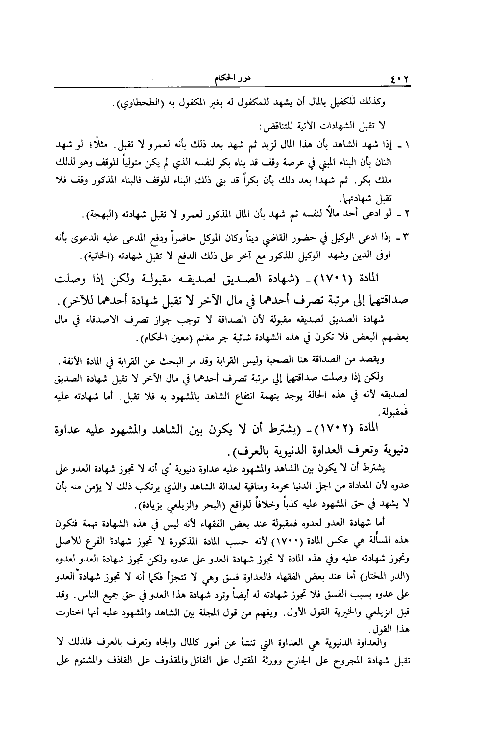 [ (الْمَادَّةُ 1702) يُشْتَرَطُ أَنْ لَا يَكُونَ بَيْنَ الشَّاهِدِ وَالْمَشْهُودِ عَلَيْهِ عَدَاوَةٌ دُنْيَوِيَّةٌ]