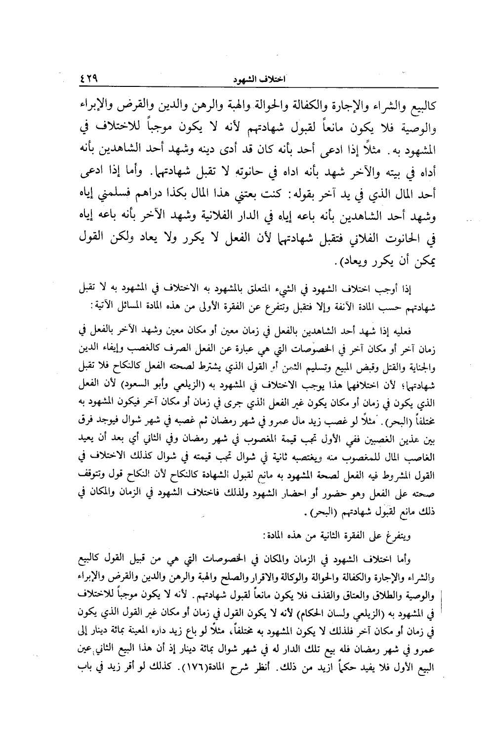 إذَا أَوْجَبَ اخْتِلَافُ الشُّهُودِ فِي الشَّيْءِ الْمُتَعَلِّقِ بِالْمَشْهُودِ بِهِ الِاخْتِلَافَ فِي الْمَشْهُودِ بِهِ لَا تُقْبَلُ شَهَادَتُهُمْ حَسَبَ الْمَادَّةِ الْآنِفَةِ وَإِلَّا فَتُقْبَلُ وَتَتَفَرَّعُ عَنْ الْفِقْرَةِ الْأُولَى مِنْ هَذِهِ الْمَادَّةِ الْمَسَائِلُ الْآتِيَةُ: