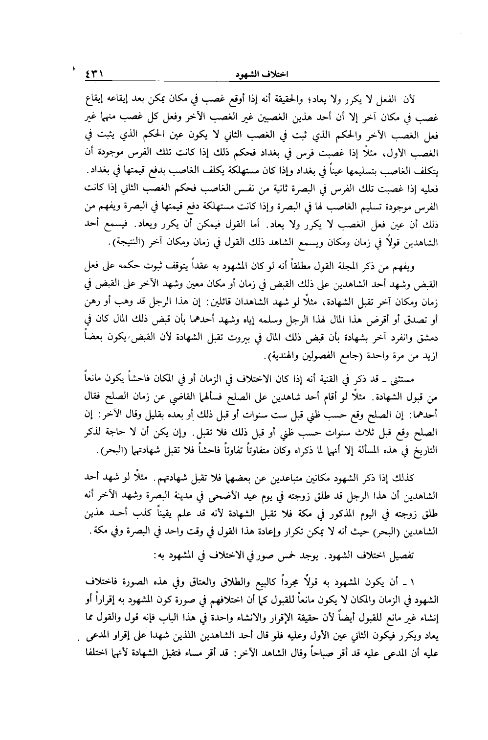تَفْصِيلُ اخْتِلَافِ الشُّهُودِ. يُوجَدُ خَمْسُ صُوَرٍ فِي الِاخْتِلَافِ فِي الْمَشْهُودِ بِهِ: