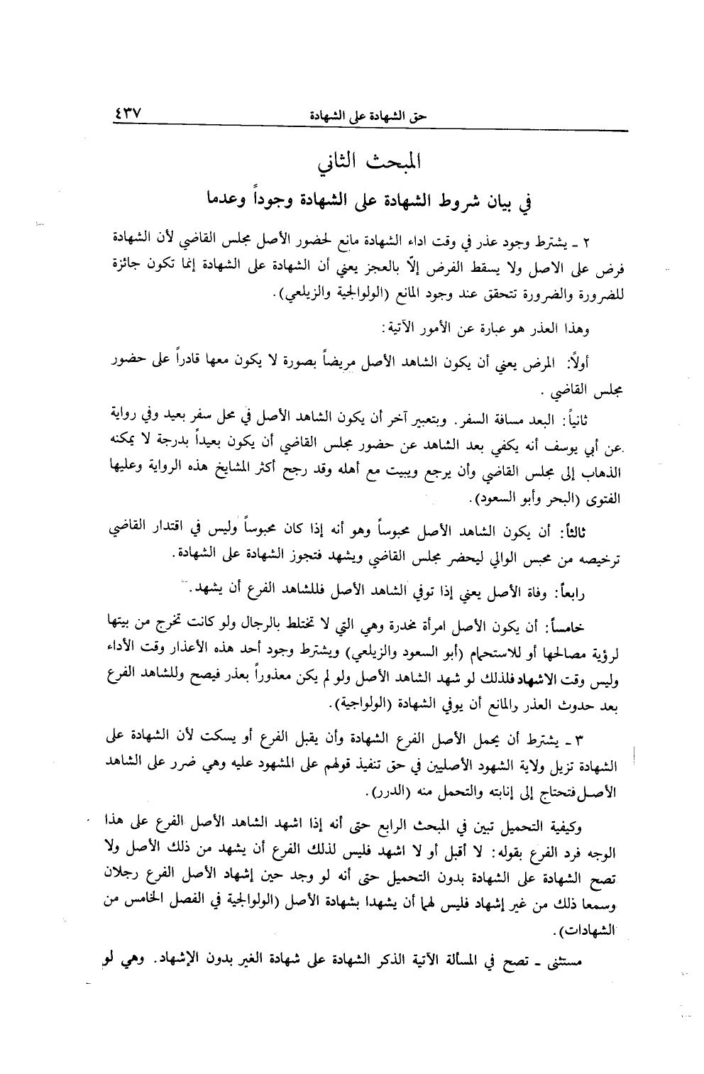 الْمَبْحَثُ الثَّانِي فِي بَيَانِ شُرُوطِ الشَّهَادَةِ عَلَى الشَّهَادَةِ وُجُودًا وَعَدَمًا