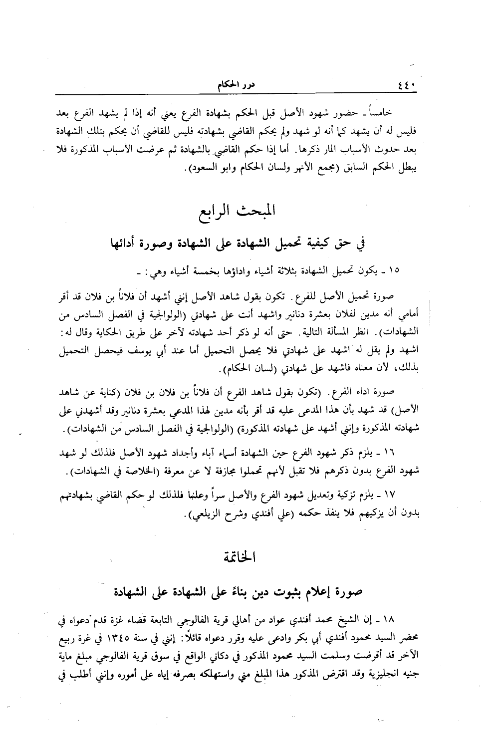 17 - يَلْزَمُ تَزْكِيَةُ وَتَعْدِيلُ شُهُودِ الْفَرْعِ وَالْأَصْلِ سِرًّا وَعَلَنًا فَلِذَلِكَ لَوْ حَكَمَ الْقَاضِي بِشَهَادَتِهِمْ بِدُونِ أَنْ يُزَكِّيَهُمْ فَلَا يَنْفُذُ حُكْمُهُ (عَلِيٌّ أَفَنْدِي وَشَرْحُ الزَّيْلَعِيّ) .