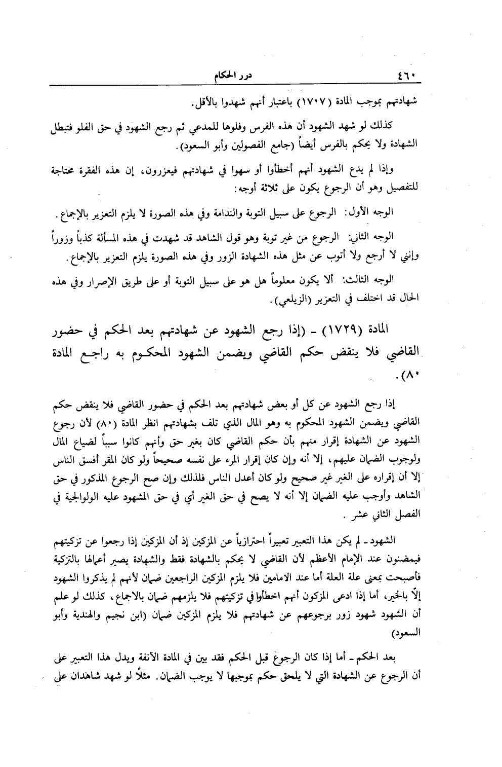 الْمَادَّةُ (1729) - (إذَا رَجَعَ الشُّهُودُ عَنْ شَهَادَتِهِمْ بَعْدَ الْحُكْمِ فِي حُضُورِ الْقَاضِي فَلَا يُنْقَضُ حُكْمُ الْقَاضِي وَيَضْمَنُ الشُّهُودُ الْمَحْكُومَ بِهِ رَاجِعْ الْمَادَّةَ 80) .