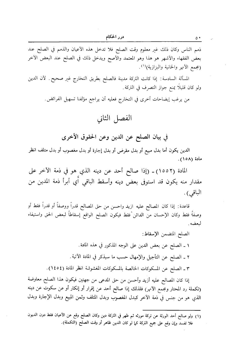 1 - الصُّلْحُ عَنْ بَعْضِ الدَّيْنِ عَلَى الْوَجْهِ الْمَذْكُورِ فِي هَذِهِ الْمَادَّةِ.