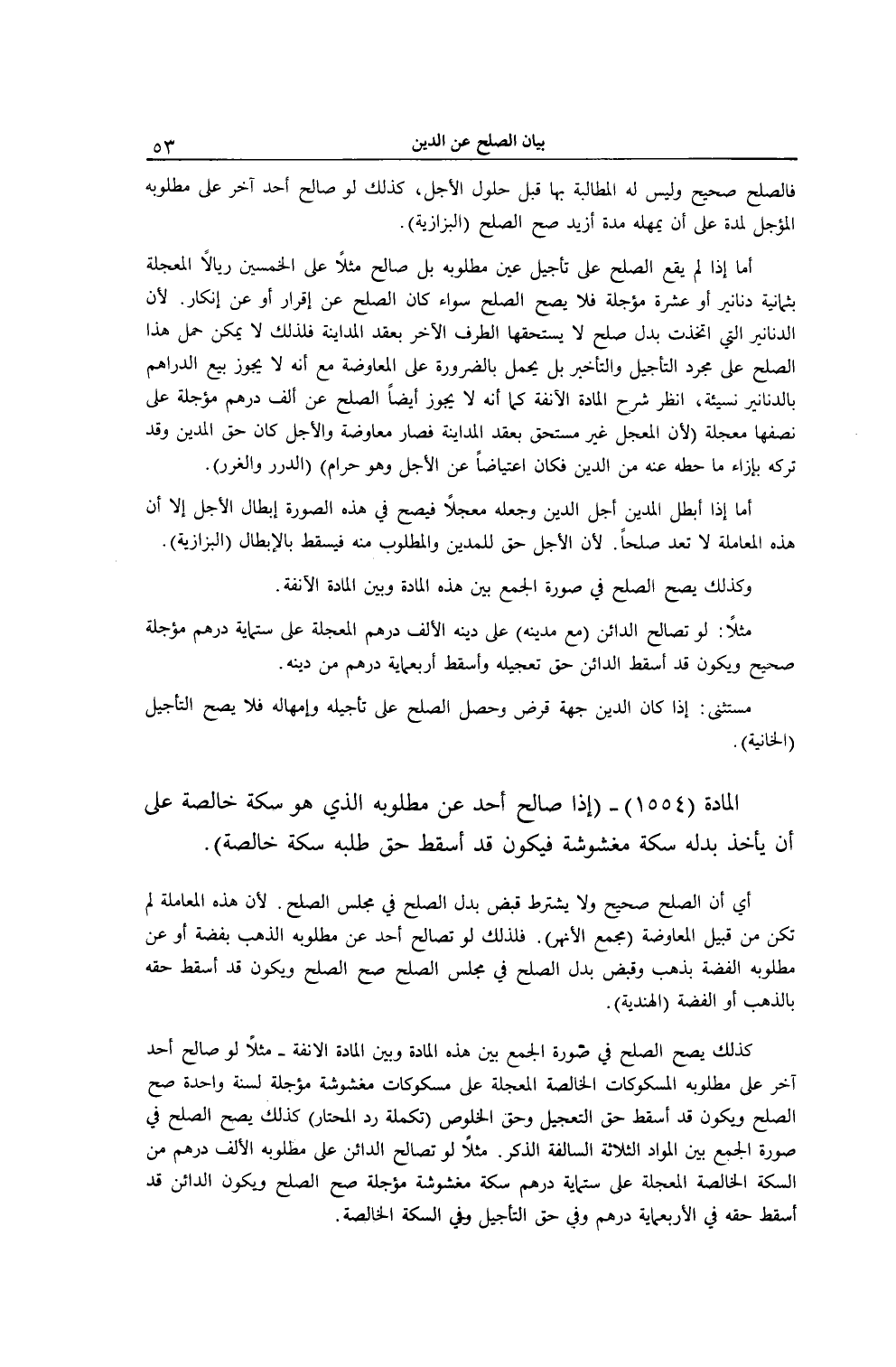 [ (الْمَادَّةُ 1554) صَالِح أَحَد عَنْ مَطْلُوبه الَّذِي هُوَ سِكَّة خَالِصَة عَلَى أَنْ يَأْخُذ بَدَّلَهُ سِكَّة مَغْشُوشَة]
