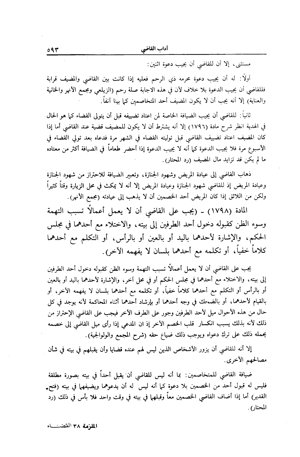 [ (الْمَادَّةُ 1798) يَجِبُ عَلَى الْقَاضِي أَنْ لَا يَعْمَلَ أَعْمَالًا تُسَبِّبُ التُّهْمَةَ وَسُوءَ الظَّنِّ]