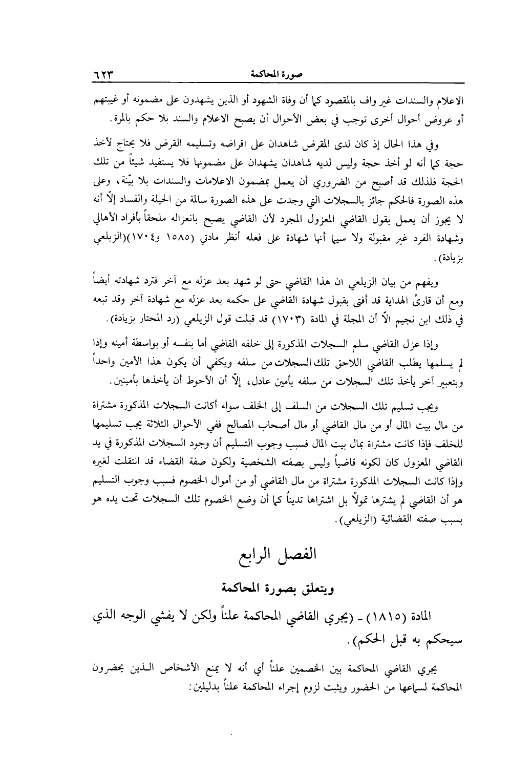 الْفَصْلُ الرَّابِعُ وَيَتَعَلَّقُ بِصُورَةِ الْمُحَاكَمَةِ