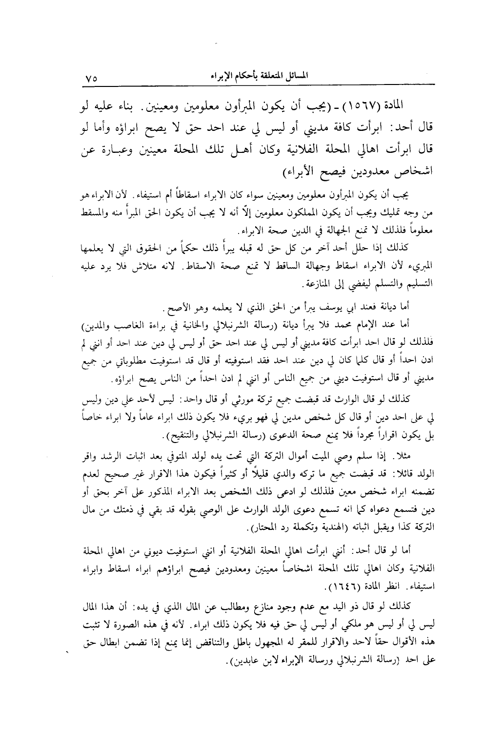 [ (الْمَادَّةُ 1567) يَجِبُ أَنْ يَكُونَ الْمُبْرَءُونَ مَعْلُومِينَ وَمُعَيَّنِينَ]