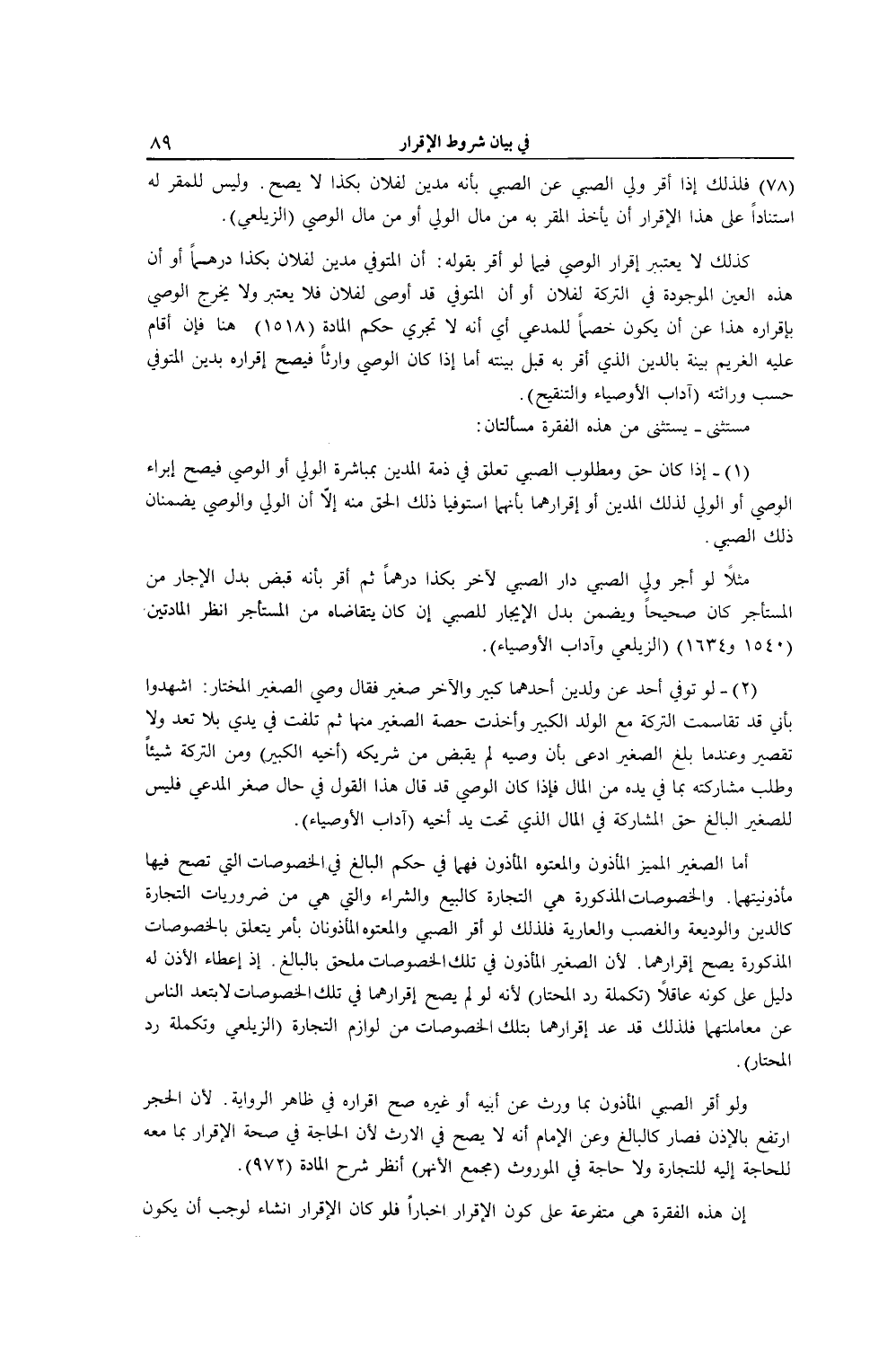 مُسْتَثْنًى - يُسْتَثْنَى مِنْ هَذِهِ الْفِقْرَةِ مَسْأَلَتَانِ: (1) - إذَا كَانَ حَقُّ وَمَطْلُوبُ الصَّبِيِّ تَعَلَّقَ فِي ذِمَّةِ الْمَدِينِ بِمُبَاشَرَةِ الْوَلِيِّ، أَوْ الْوَصِيِّ فَيَصِحُّ إبْرَاءُ الْوَصِيِّ، أَوْ الْوَلِيِّ لِذَلِكَ الْمَدِينِ، أَوْ إقْرَارُهُمَا بِأَنَّهُمَا اسْتَوْفَيَا ذَلِكَ الْحَقَّ مِنْهُ إلَّا أَنَّ الْوَلِيَّ وَالْوَصِيَّ يَضْمَنَانِ ذَلِكَ لِلصَّبِيِّ.