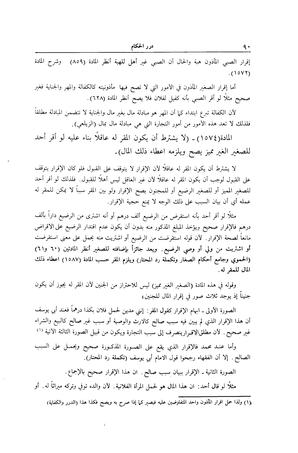 [ (الْمَادَّةُ 1574) لَا يُشْتَرَطُ أَنْ يَكُونَ الْمُقَرَّ لَهُ عَاقِلًا]