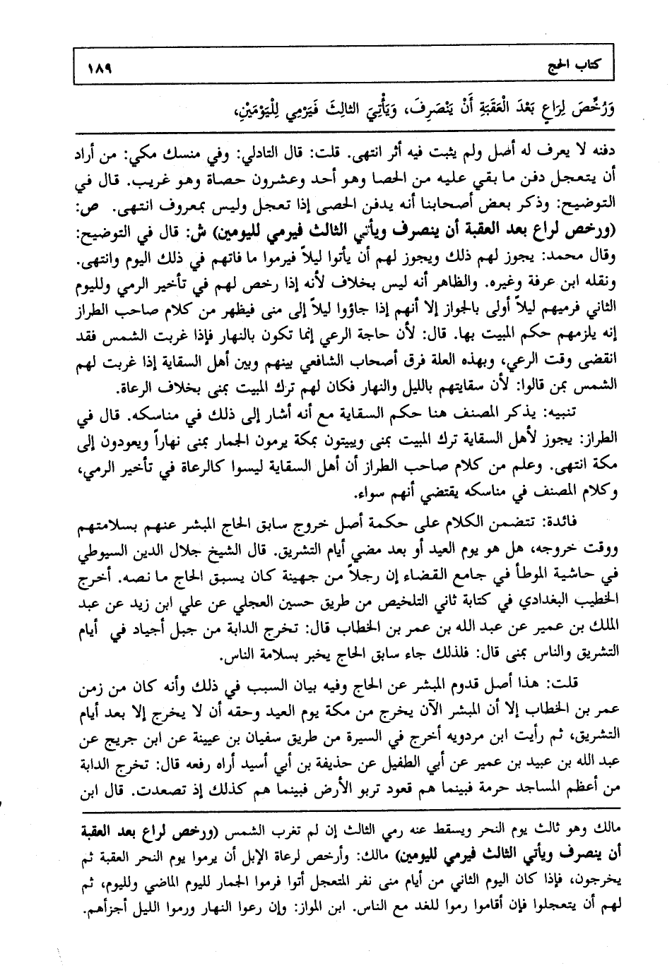 ورخص لراع بعد العقبة أن ينصرف ويأتي الثالث فيرمي لليومين