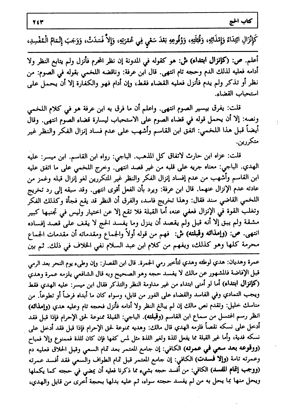 قلت: عزاه ابن حارث لاتفاق كل المذهب الباجي رواه ابن القاسم ابن ميسر عليه الهدي. الباجي معناه جريه على قلبه من غير قصد انتهى. وخرج اللخمي على ما اتفق عليه ابن القاسم وأشهب من عدم إفساد إنزال الفكر والنظر غير المتكررين لغو إنزال قبله وغمز من عادته عدم الإنزال عنهما. قال ابن عرفة ويرد بأن الفعل أقوى انتهى. وقد سبقه إلى رد تخريج اللخمي القاضي سند فقال وهذا تخريج فاسد والفرق أن النظر قد يقع فجأة وكذلك الفكر وتغلب القوة في الإنزال فعفي عنه أما القبلة فلا تقع إلا عن اختيار وليس في تجنبها كبير مشقة ولم يبق إلا أنه قبل ولم يقصد أن ينزل وما يفسد الحج لا يقف على قصد إفساده انتهى. ص: "وإمذائه وقبلته" ش: فهم من قوله أولا والجماع ومقدماته أن مقدمات الجماع محرمة كلها وهو كذلك ويفهم من كلام ابن عبد السلام نفي الخلاف في ذلك ثم بين