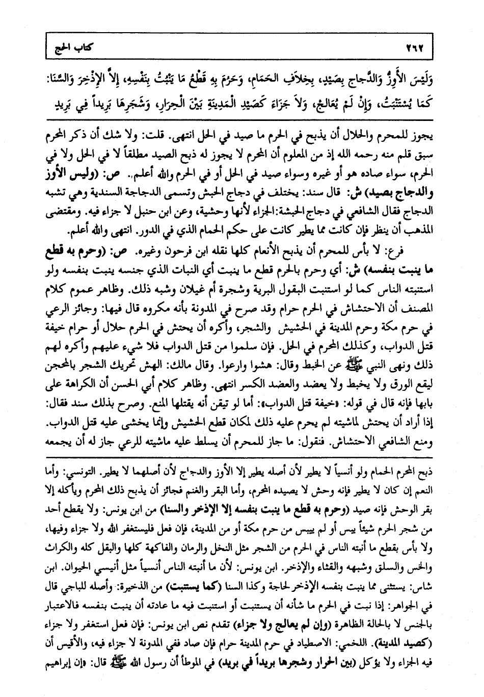 يجوز للمحرم والحلال أن يذبح في الحرم ما صيد في الحل انتهى. قلت: ولا شك أن ذكر المحرم سبق قلم منه رحمه الله إذ من المعلوم أن المحرم لا يجوز له ذبح الصيد مطلقا لا في الحل ولا في الحرم سواء صاده هو أو غيره وسواء صيد في الحل أو في الحرم والله أعلم. ص: "وليس الأوز والدجاج بصيد" ش: قال سند يختلف في دجاج الحبش وتسمى الدجاجة السندية وهي تشبه الدجاج فقال الشافعي في دجاج الحبشة الجزاء لأنها وحشية وعن ابن حنبل لا جزاء فيه. ومقتضى المذهب أن ينظر فإن كانت مما يطير كانت على حكم الحمام الذي في الدور. انتهى والله أعلم.