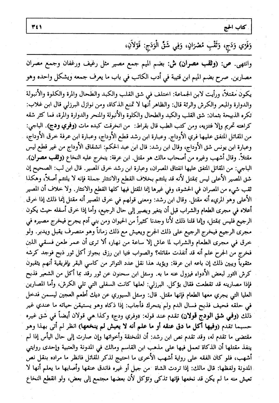 وفري ودج وثقب مصران وفي شق الودج قولان