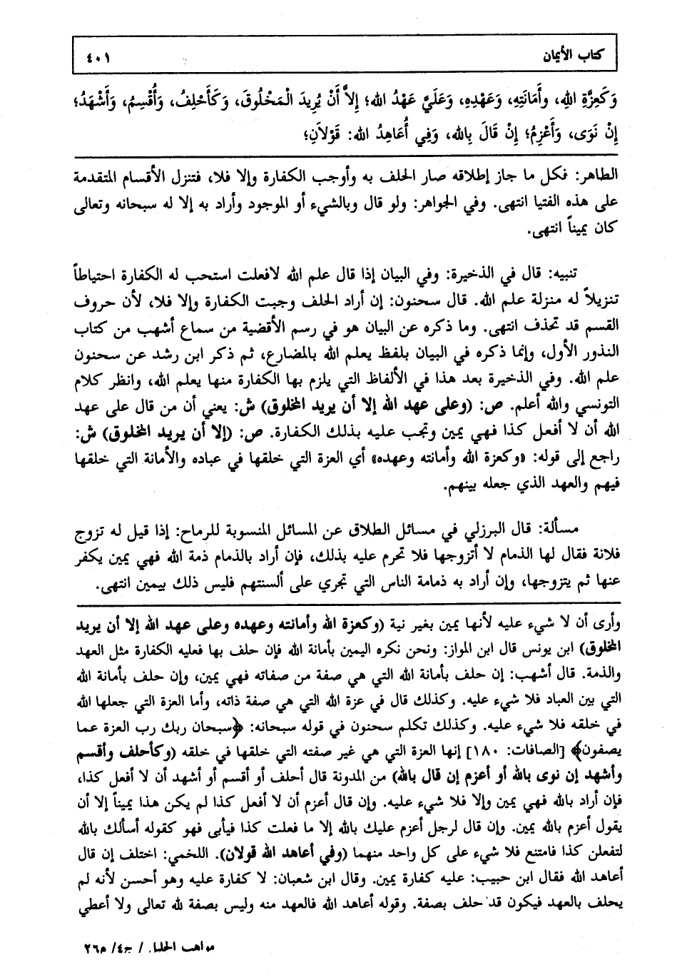 مسألة" قال البرزلي في مسائل الطلاق عن المسائل المنسوبة للرماح إذا قيل له تزوج فلانة فقال لها الذمام لا أتزوجها فلا تحرم عليه بذلك فإن أراد بالذمام ذمة الله فهي يمين يكفر عنها ثم يتزوجها وإن أراد به ذمامة الناس التي تجري على ألسنتهم فليس ذلك بيمين انتهى.