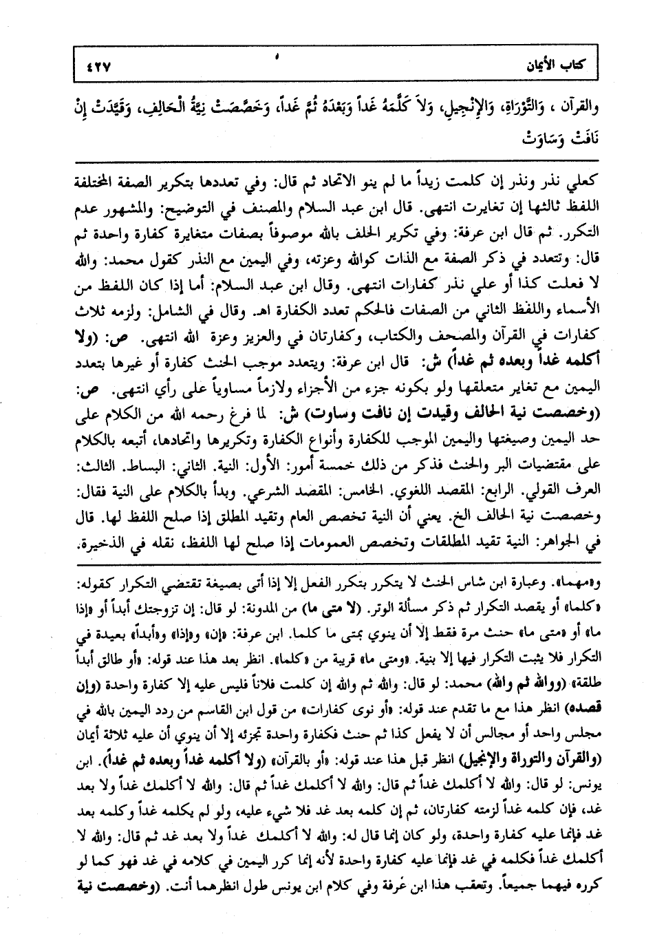 والقرآن والتوراة والإنجيل ولا كلمه غدا وبعده ثم غدا وخصصت نية الحالف وقيدت إن نافت وساوت