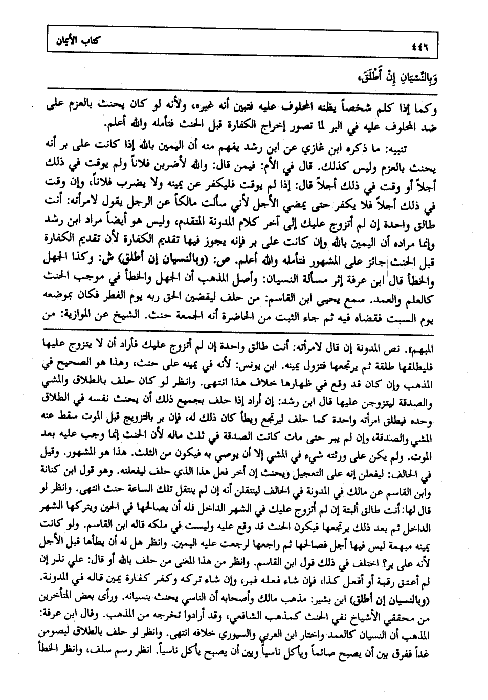 وبالنسيان إن أطلق