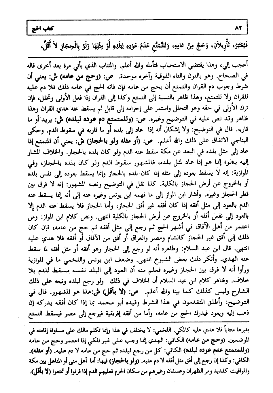 أعجب إلي وهذا يقتضي الاستحباب فتأمله والله أعلم. والمنتاب الذي يأتي مرة بعد أخرى قاله في الصحاح. وهو بالنون والتاء الفوقية وآخره موحدة. ص: "وحج من عامه" ش: يعني أن شرط وجوب دم القران والتمتع أن يحج من عامه فإن فاته الحج في عامه ذلك فلا دم عليه للقران ولا للتمتع وهذا ظاهر بالنسبة إلى التمتع وكذا إلى القران إذا فعل الأولى وتحلل فإن ترك الأولى في حقه وهو التحلل واستمر على إحرامه إلى قابل لم يسقط عنه هدي القران وهذا ظاهر وقد نص عليه في التوضيح وغيره. ص: "وللمتمتع دم عوده لبلده" ش: يريد أو ما قاربه. قال في التوضيح ولا إشكال أنه إذا عاد إلى بلده أو ما قاربه في سقوط الدم. وحكى البناجي الاتفاق على ذلك والله أعلم. ص: "أو مثله ولو بالحجاز" ش: يعني أن المتمتع إذا عاد إلى مثل بلده في البعد عن مكة سقط عنه الدم ولو كان بلده بالحجاز. والخلاف المشار إليه ب"لو" إنما هو إذا عاد لمثل بلده فالمشهور سقوط الدم ولو كان بلده بالحجاز وفي الموازية إنه لا يسقط بعوده إلى مثله إذا كان بلده بالحجاز وإنما يسقط بعوده إلى نفس بلده أو بالخروج عن أرض الحجاز بالكلية. كذا نقل في التوضيح ونصه المشهور إنه لا فرق بين قطر الحجاز وغيره. وأشار ابن المواز إلى ما فهمه ابن يونس وغيره عنه إلى أنه إنما يسقط عنه الدم بالعود إلى مثل أفقه إذا كان أفقه غير أفق الحجاز وأما الحجاز فلا يسقط عنه الدم إلا بالعود إلى نفس أفقه أو بالخروج عن أرض الحجاز بالكلية انتهى. ونص كلام ابن المواز ومن اعتمر من أهل الآفاق في أشهر الحج ثم رجع إلى مثل أفقه ثم حج من عامه فإن كان ذلك إلى أفق غير الحجاز كالشام ومصر والعراق أو أفق من الآفاق أو أفقه فلا هدي عليه انتهى. قال ابن عبد السلام وظاهره أنه لو رجع إلى الحجاز وهو أفقه أو مثل أفقه لما سقط عنه الهدي. وأنكر ذلك بعض الشيوخ انتهى. وضعف ابن يونس واللخمي ما في الموازية ورأوا أنه لا فرق بين الحجاز وغيره فعلم منه أن العود إلى البلد نفسه مسقط للدم بلا خلاف. وظاهر كلام ابن عبد السلام أن الخلاف في ذلك ولو رجع لبلده وتبعه على ذلك الشارح وليس كذلك كما بينا والله أعلم. ص: "لا بأقل" ش: هذا هو المشهور. قال في التوضيح وأطلق المتقدمون في هذا الشرط وقيده أبو محمد بما إذا كان أفقه يدركه إن ذهب إليه ويعود فيدرك الحج من عامه وأما من أفقه إفريقية فيرجع إلى مصر فيسقط التمتع