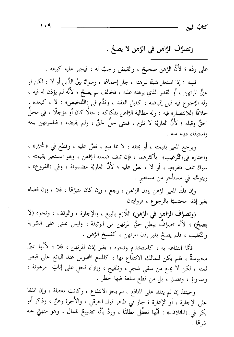 وتصرف الراهن في الرهن لا يصح