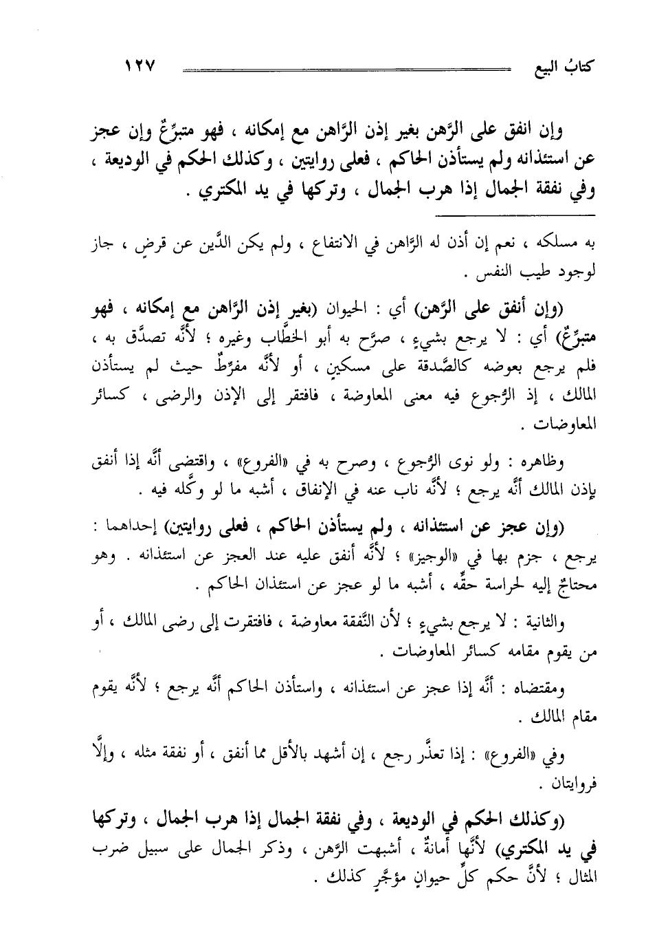 وإن انفق على الرهن بغير إذن الراهن مع إمكانه فهو متبرع وإن عجز عن استئذانه ولم يستأذن الحاكم فعلى روايتين وكذلك الحكم في الوديعة وفي نفقة الجمال إذا هرب الجمّال وتركها في يد المكتري.