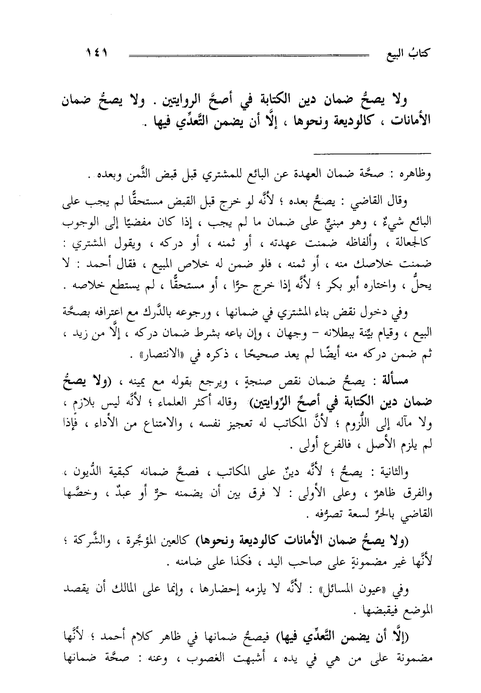 وقال القاضي: يصح بعده لأنه لو خرج قبل القبض مستحقا لم يجب على البائع شيء وهو مبني على ضمان ما لم يجب إذا كان مفضيا إلى الوجوب كالجعالة وألفاظه ضمنت عهدته أو ثمنه أو دركه ويقول المشتري ضمنت خلاصك منه أو ثمنه فلو ضمن له خلاص المبيع فقال أحمد: لا يحل واختاره أبو بكر لأنه إذا خرج حرا أو مستحقا لم يستطع خلاصه