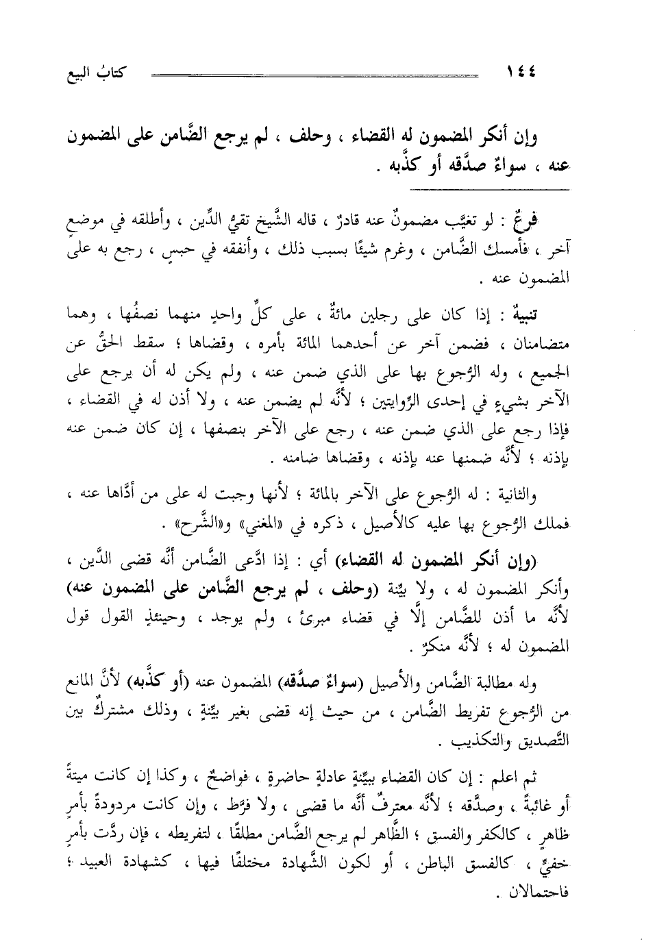 وله مطالبة الضامن والأصيل "سواء صدقه" المضمون عنه "أو كذبه" لأن المانع من الرجوع تفريط الضامن من حيث إنه قضى بغير بينة وذلك مشترك بين التصديق والتكذيب.