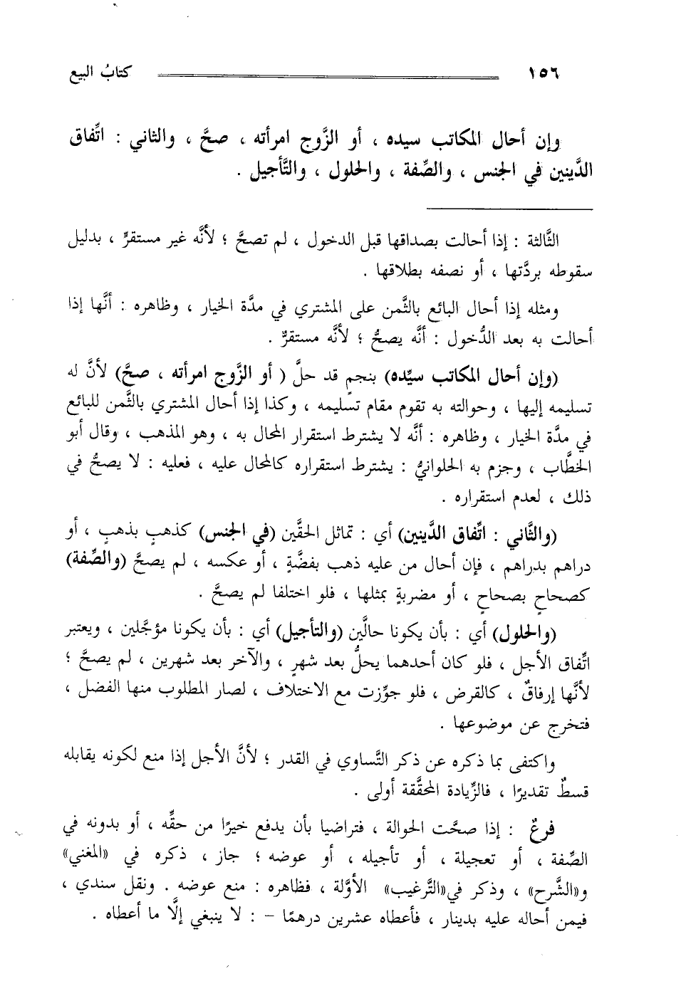 وإن أحال المكاتب سيده أو الزوج امرأته صح والثاني: اتفاق الدينين في الجنس والصفة والحلول والتأجيل.