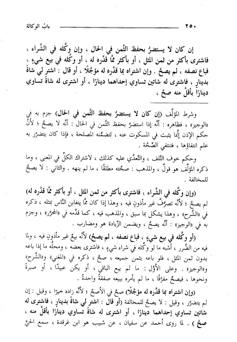 إن كان لا يستضر بحفظ الثمن في الحال وإن وكله في الشراء فاشترى بأكثر من ثمن المثل أو بأكثر مما قدره له أو وكله في بيع شيء فباع نصفه لم يصح وإن اشتراه بما قدره له مؤجلا أو قال اشتر لي شاة بدينار فاشترى له شاتين تساوي إحداهما دينارا أو اشترى له شاة تساوي دينارا بأقل منه صح،