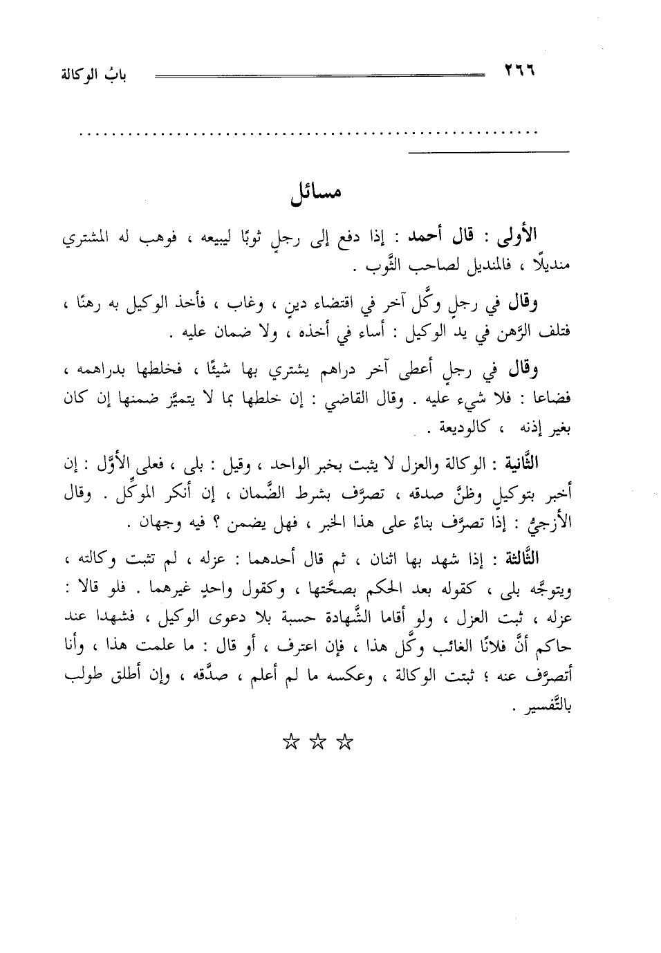 الأولى: قال أحمد: إذا دفع إلى رجل ثوبا ليبيعه فوهب له المشتري منديلا فالمنديل لصاحب الثوب.