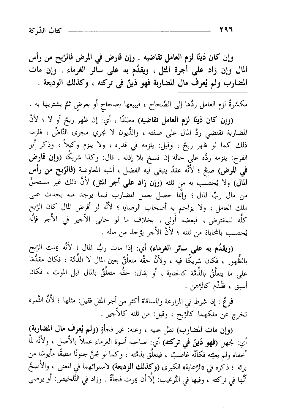 "ويقدم به على سائر الغرماء" أي: إذا مات رب المال لأنه يملك الربح بالظهور فكان شريكا فيه ولأن حقه متعلق بعين المال لا الذمة فكان مقدما على مايتعلق بالذمة كالجناية أو يقال حقه متعلق بالمال قبل الموت فكان أسبق فقدم كالرهن