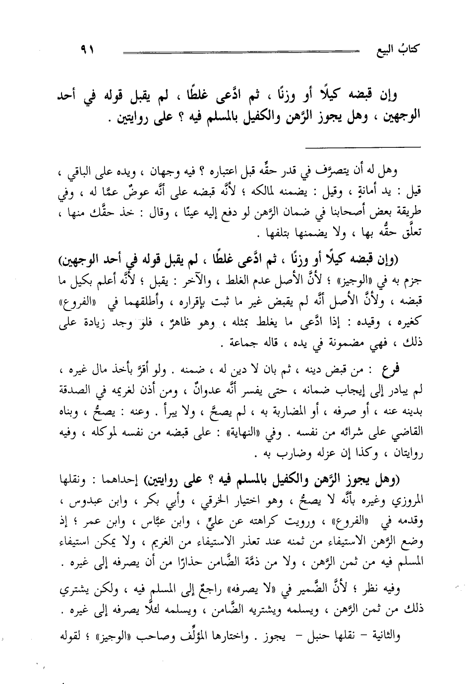 وإن قبضه كيلا أو وزنا ثم ادعى غلطا لم يقبل قوله في أحد الوجهين وهل يجوز الرهن والكفيل بالمسلم؟ فيه على روايتين.