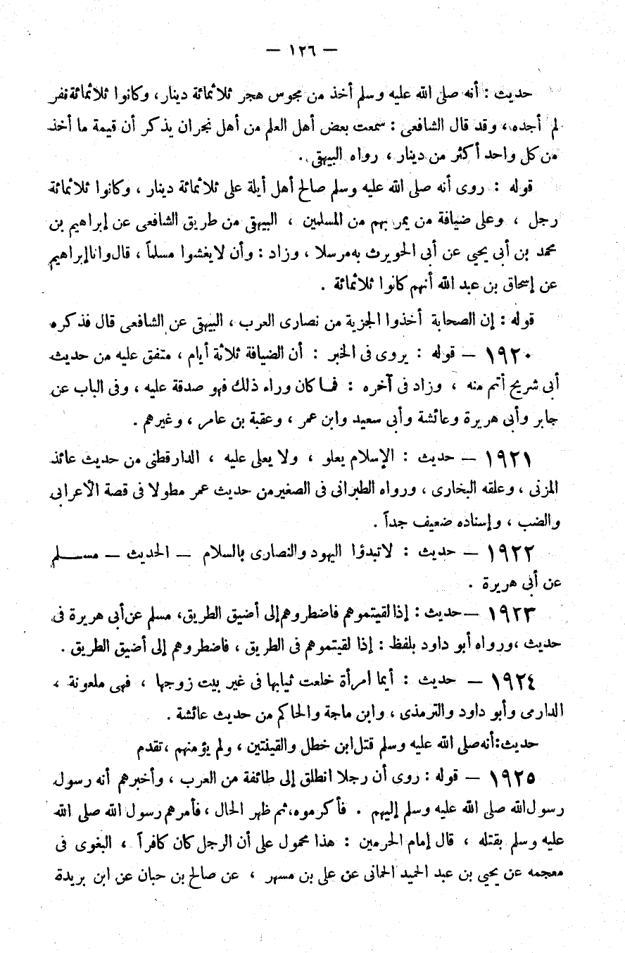 حديث انه صلى الله عليه و سلم أخذ من مجوس هجر ثلاثمائة دينار وكانوا ثلاثمائة نفر لم أجده وقد قال الشافعي سمعت بعض أهل العلم من أهل نجران يذكر أن قيمة ما أخذ من كل واحد أكثر من دينار رواه البيهقي
