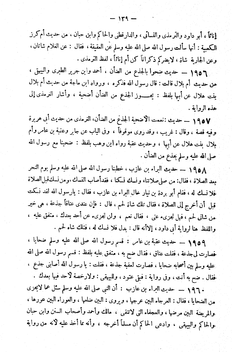 1957 - حديث نعمت الأضحية الجذع من الضأن الترمذي من حديث أبي هريرة وفيه قصة وقال غريب وقد روي موقوفا وفي الباب عن جابر وعقبة بن عامر وأم بلال بنت هلال عن أبيها وحديث عقبة رواه بن وهب بلفظ ضحينا مع رسول الله صلى الله عليه و سلم بجذع من الضأن