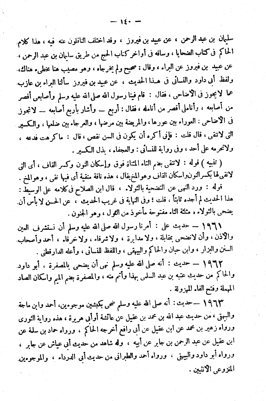 1962 - حديث أنه صلى الله عليه و سلم نهى أن يضحى بالمصفرة أبو داود والحاكم من حديث عتبة بن عبد السلمي بهذا وأتم منه والمصفرة بضم الميم واسكان الصاد المهملة وفتح الفاء المهزولة