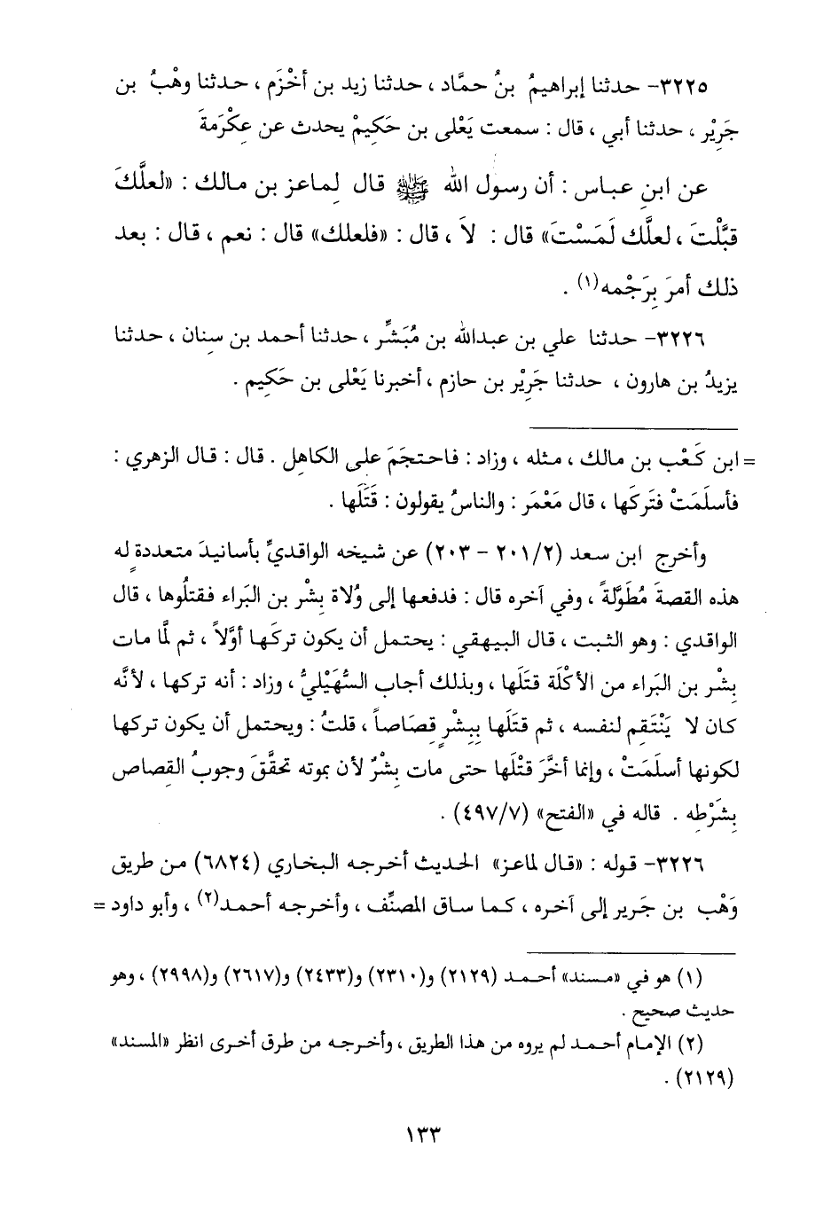3226 - نا عَلِيُّ بْنُ عَبْدِ اللَّهِ بْنِ مُبَشِّرٍ , نا أَحْمَدُ بْنُ سِنَانٍ , نا يَزِيدُ بْنُ هَارُونَ , أنا جَرِيرُ بْنُ حَازِمٍ , أنا يَعْلَى بْنُ حَكِيمٍ -[134]- ح وَنا الْحُسَيْنُ بْنُ إِسْمَاعِيلَ , نا أَبُو السَّائِبِ , نا يَزِيدُ , أنا جَرِيرُ بْنُ حَازِمٍ , عَنْ يَعْلَى بْنِ حَكِيمٍ , عَنْ عِكْرِمَةَ , عَنِ ابْنِ عَبَّاسٍ , أَنَّ رَسُولَ اللَّهِ صَلَّى اللهُ عَلَيْهِ وَسَلَّمَ قَالَ لِمَاعِزِ بْنِ مَالِكٍ حِينَ أَتَاهُ فَأَقَرَّ عِنْدَهُ بِالزِّنَا: «§لَعَلَّكَ قَبَّلْتَ أَوْ لَمَسْتَ» , فَقَالَ: لَا , قَالَ: «فَكَذَا؟» , قَالَ: نَعَمْ , قَالَ: «فَأَمَرَ بِهِ فَرُجِمَ». وَقَالَ ابْنُ سِنَانٍ: «لَعَلَّكَ قَبَّلْتَ أَوْ غَمَزْتَ أَوْ نَظَرْتَ» , قَالَ: لَا , فَقَالَ لَهُ رَسُولُ اللَّهِ صَلَّى اللهُ عَلَيْهِ وَسَلَّمَ: «أَفَعَلْتَ كَذَا؟» لَا يُكَنِّي , قَالَ: نَعَمْ , فَعِنْدَ ذَلِكَ أَمَرَ بِرَجْمِهِ