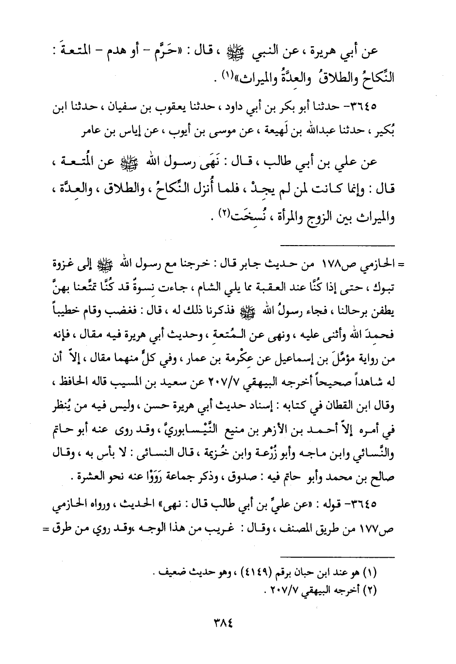 3645 - نا أَبُو بَكْرِ بْنُ أَبِي دَاوُدَ , نا يَعْقُوبُ بْنُ سُفْيَانَ , نا ابْنُ بُكَيْرٍ , نا عَبْدُ اللَّهِ بْنُ لَهِيعَةَ , عَنْ مُوسَى بْنِ أَيُّوبَ , عَنْ إِيَاسِ بْنِ عَامِرٍ , عَنْ عَلِيِّ بْنِ أَبِي طَالِبٍ , قَالَ: نَهَى رَسُولُ اللَّهِ صَلَّى اللهُ عَلَيْهِ وَسَلَّمَ عَنِ الْمُتْعَةِ , قَالَ: «وَإِنَّمَا كَانَتْ لِمَنْ لَمْ يَجِدْ §فَلَمَّا أُنْزِلَ النِّكَاحُ وَالطَّلَاقُ وَالْعُدَّةُ وَالْمِيرَاثُ بَيْنَ الزَّوْجِ وَالْمَرْأَةِ نُسِخَتْ»