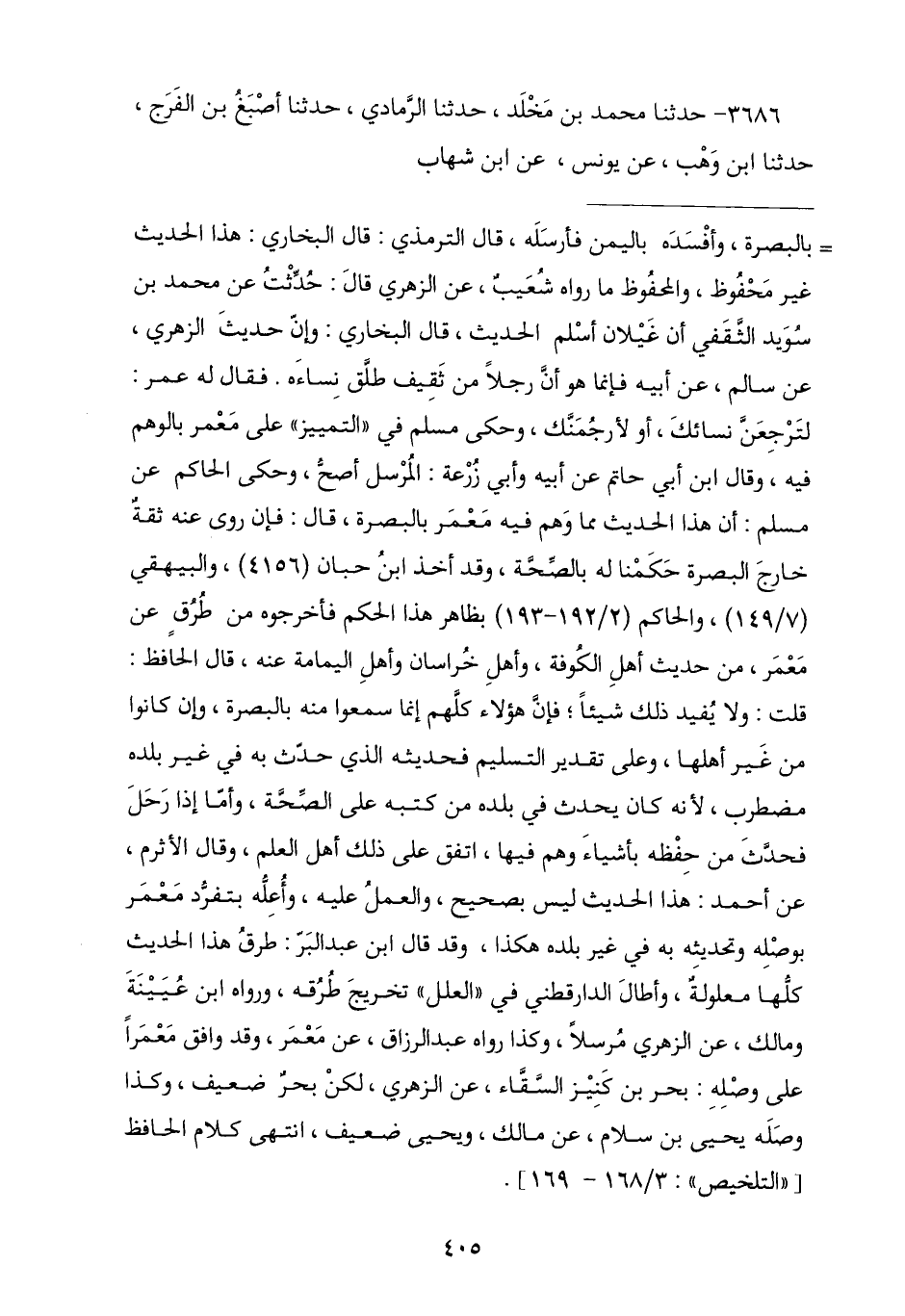 3686 - نا مُحَمَّدُ بْنُ مَخْلَدٍ , نا الرَّمَادِيُّ , نا أَصْبَغُ بْنُ الْفَرَجِ , نا ابْنُ وَهْبٍ , عَنْ يُونُسَ , عَنِ ابْنِ شِهَابٍ , -[406]- عَنْ عُثْمَانَ بْنِ مُحَمَّدِ بْنِ أَبِي سُوَيْدٍ , أَنَّ رَسُولَ اللَّهِ صَلَّى اللهُ عَلَيْهِ وَسَلَّمَ قَالَ لِغَيْلَانَ بْنَ سَلَمَةَ حِينَ أَسْلَمَ وَعِنْدَهُ عَشْرُ نِسْوَةٍ: § «خُذْ مِنْهُنَّ أَرْبَعًا وَفَارِقْ سَائِرَهُنَّ».