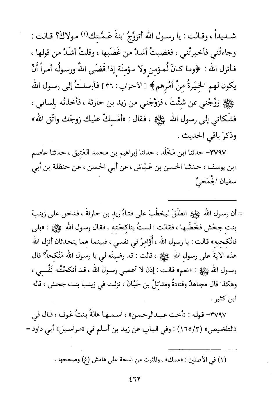 3797 - نا ابْنُ مَخْلَدٍ , نا إِبْرَاهِيمُ بْنُ مُحَمَّدٍ الْعَتِيقِ , نا عَاصِمُ بْنُ يُوسُفَ , نا الْحَسَنُ بْنُ عَيَّاشٍ , عَنْ أَبِي الْحَسَنِ , عَنْ حَنْظَلَةَ بْنِ أَبِي سُفْيَانَ الْجُمَحِيِّ , -[463]- عَنْ أُمِّهِ , قَالَ: «رَأَيْتُ §أُخْتَ عَبْدِ الرَّحْمَنِ بْنِ عَوْفٍ تَحْتَ بِلَالٍ»