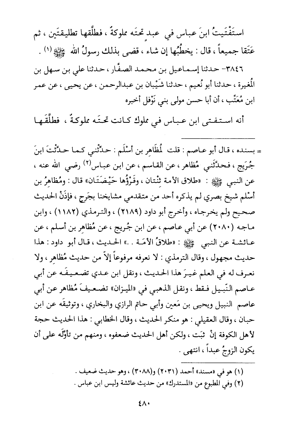 3846 - نا إِسْمَاعِيلُ بْنُ مُحَمَّدٍ الصَّفَّارُ , نا عَلِيُّ بْنُ سَهْلِ بْنِ الْمُغِيرَةِ , نا أَبُو نُعَيْمٍ , نا شَيْبَانُ , عَنْ يَحْيَى , عَنْ عُمَرَ بْنِ مُعَتِّبٍ , أَنَّ أَبَا حَسَنٍ مَوْلَى بَنِي نَوْفَلٍ أَخْبَرَهُ , أَنَّهُ اسْتَفْتَى ابْنَ عَبَّاسٍ فِي مَمْلُوكٍ كَانَتْ تَحْتَهُ مَمْلُوكَةٌ فَطَلَّقَهَا -[481]- تَطْلِيقَتَيْنِ وَبَانَتْ مِنْهُ ثُمَّ إِنَّهُمَا أُعْتِقَا بَعْدَ ذَلِكَ §هَلْ يَصِحُّ لِلرَّجُلِ أَنْ يَخْطُبَهَا , قَالَ ابْنُ عَبَّاسٍ: «نَعَمْ إِنَّ رَسُولَ اللَّهِ صَلَّى اللهُ عَلَيْهِ وَسَلَّمَ قَضَى بِذَلِكَ»