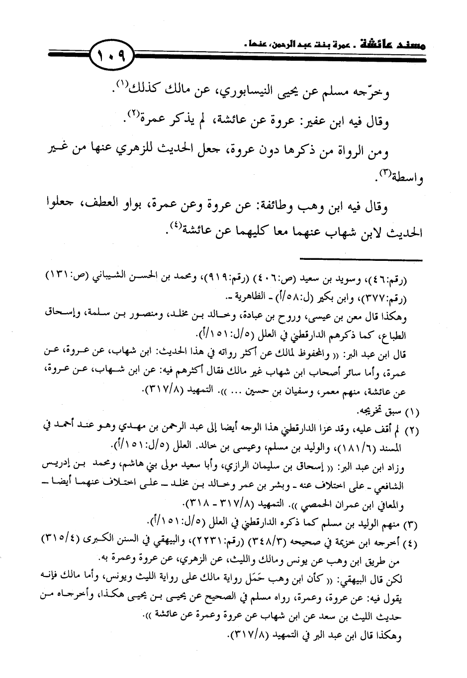 (٢) لم أقف عليه، وقد عزا الدارقطني هذا الوجه أيضًا إلى عبد الرحمن بن مهدي وهو عند أحمد في المسند (٦/ ١٨١)، والوليد بن مسلم، وعيسى بن خالد. العلل (٥/ ل: ١٥١/ أ).