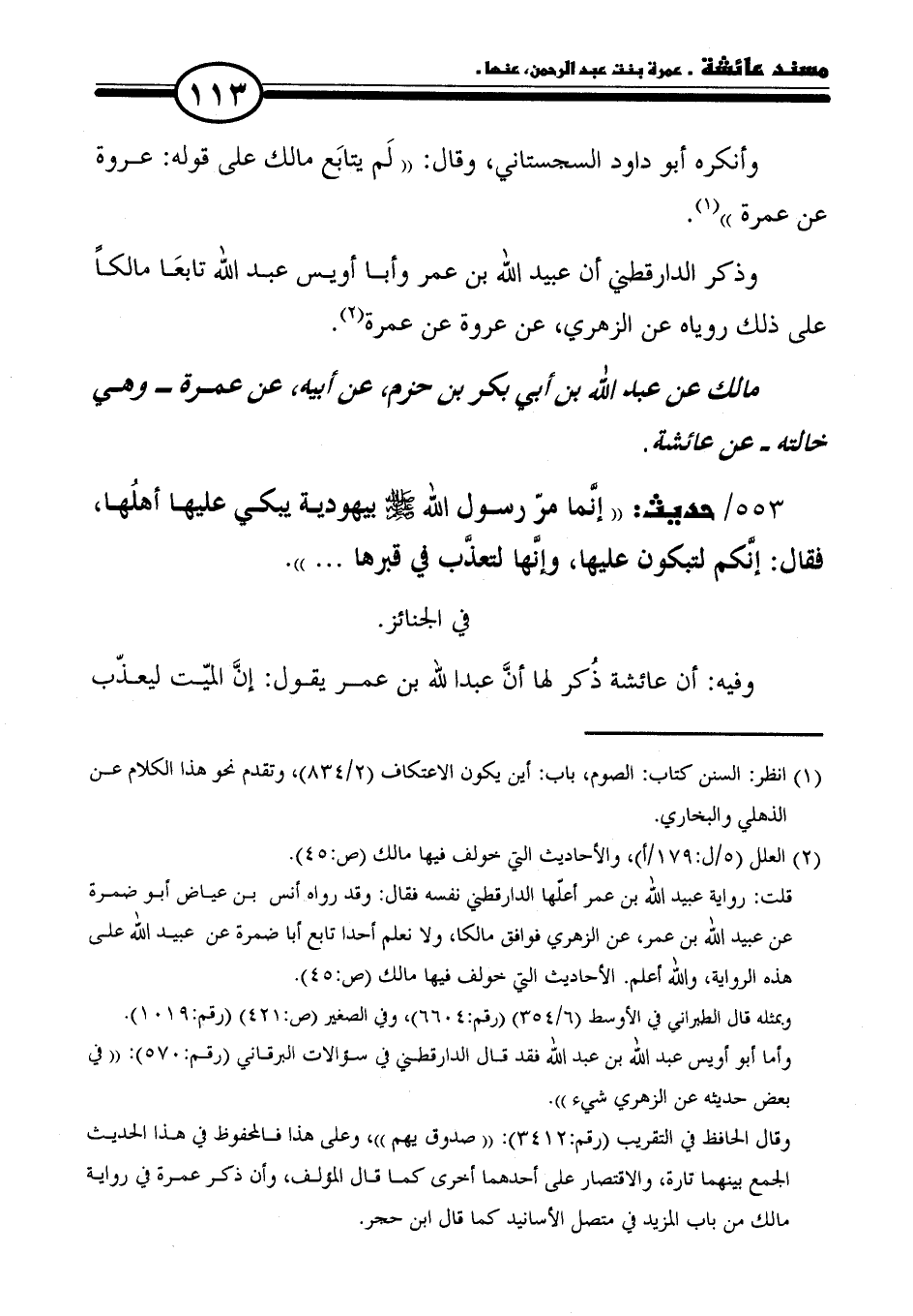 ٥٥٣ / حديث: "إنَّما مرّ رسول الله - صلى الله عليه وسلم - بيهودية يبكي عليها أهلُها، فقال: إنَّكم لتبكون عليها، وإنَّها لتعذَّب في قبرها. . .".