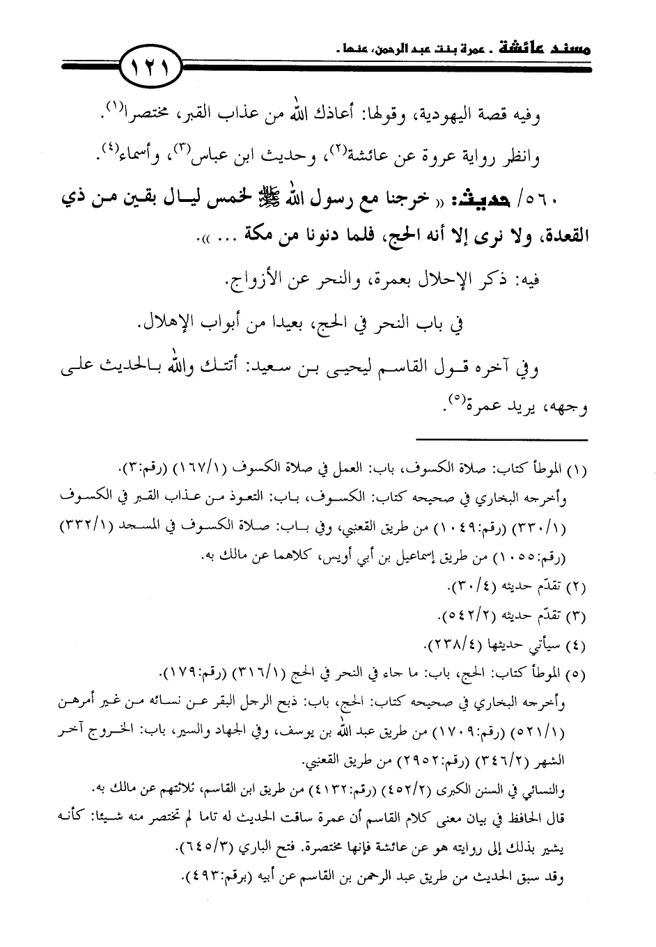 ٥٦٠ / حديث: "خرجنا مع رسول الله - صلى الله عليه وسلم - لخمس ليال بقين من ذي القعدة، ولا نرى إلا أنه الحج، فلما دنونا من مكة ... ".