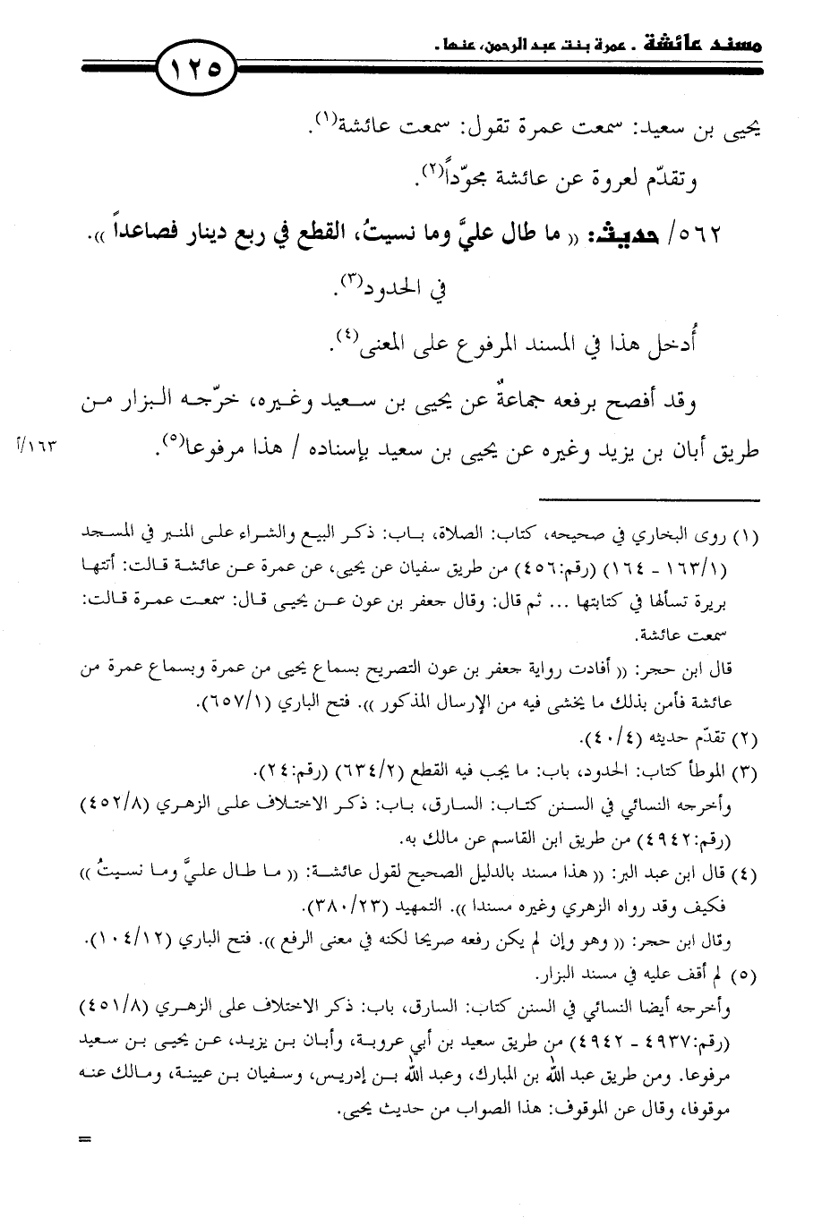 ٥٦٢ / حديث: "ما طال عليَّ وما نسيتُ، القطع في ربع دينار فصاعدًا".