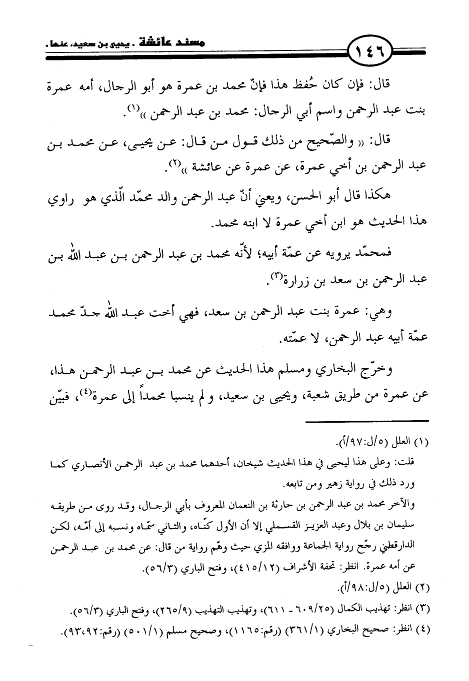 هكذا قال أبو الحسن، ويعني أنّ عبد الرحمن والد محمّد الّذي هو راوي هذا الحديث هو ابن أخي عمرة لا ابنه محمد.