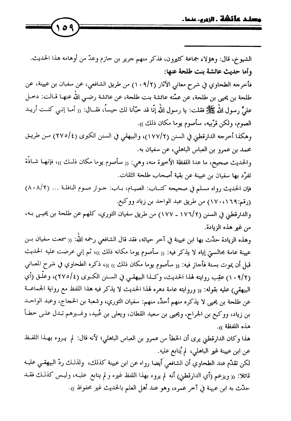 لكن تقدّم عند الطحاوي أن الشافعي أَيضا رواه عن ابن عيينة كذلك، ولذلك ردّ البيهقي عليه قائلا: "ويزعم (أي الدارقطني) أنه لم يروه بهذا اللفظ غيره ولم يتابع عليه، وليس كذلك فقد حدّث به ابن عيينة في آخر عمره، وهو عند أهل العلم بالحديث غير محفوظ".