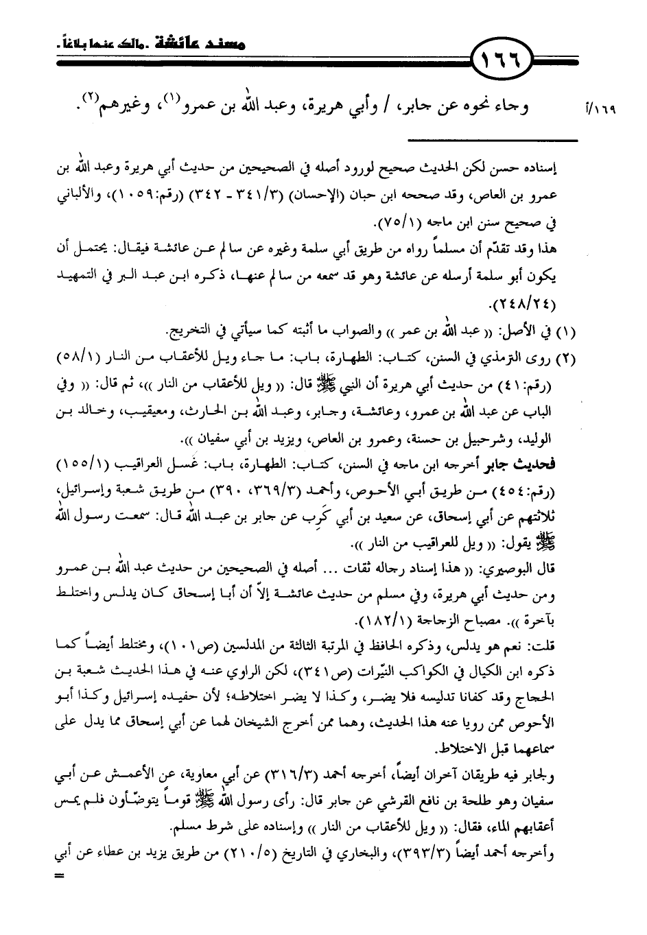 (٢) روى الترمذي في السنن، كتاب: الطهارة، باب: ما جاء ويل للأعقاب من النار (١/ ٥٨) (رقم: ٤١) من حديث أبي هريرة أن النبي - صلى الله عليه وسلم - قال: "ويل للأعقاب من النار"، ثم قال: "وفي الباب عن عبد الله بن عمرو، وعائشة، وجابر، وعبد الله بن الحارث، ومعيقيب، وخالد بن الوليد، وشرحبيل بن حسنة، وعمرو بن العاص، ويزيد بن أبي سفيان".